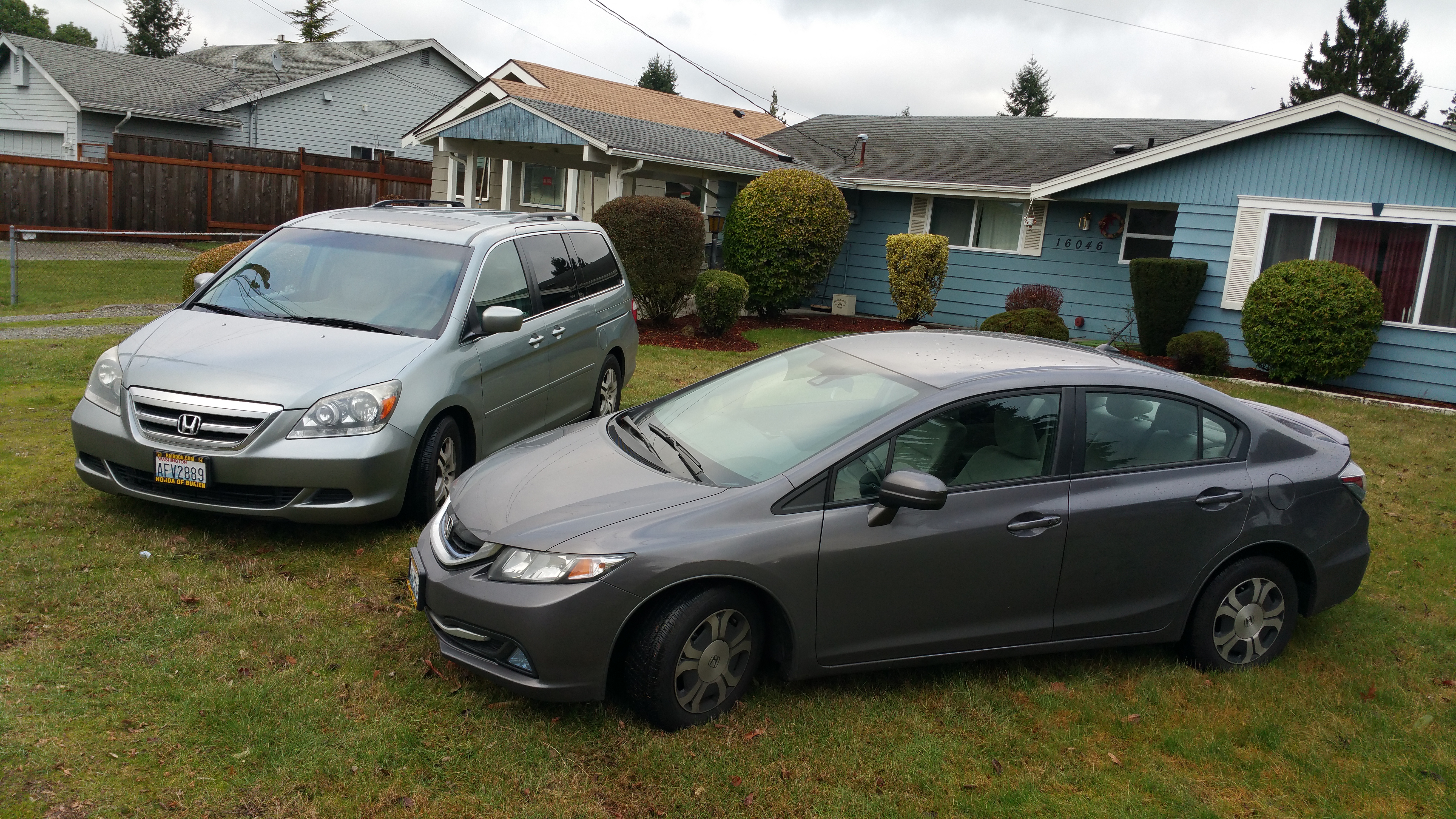 Earlier this month, another lady didn’t like Chris’ car either. So, both of us got new wheels – well, I got a 2014 Civic Hybrid; Chris got a 2005 Odyssey – and car payments to go with (hooray of the economy!).