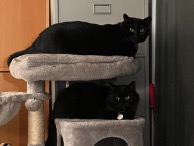 Our cats, Cora and Sheba, continue to be spoiled indoor cats. Since our last update was 2022, they have not bonded but remain tolerant of each other. I think Sheba may be part Bombay given her characteristics and temperament. She Is very social and longs to be a lap cat, but given her girth, you must be sitting to hold her. She is still a good 20 pounds and could probably scare a chihuahua just by her size alone.