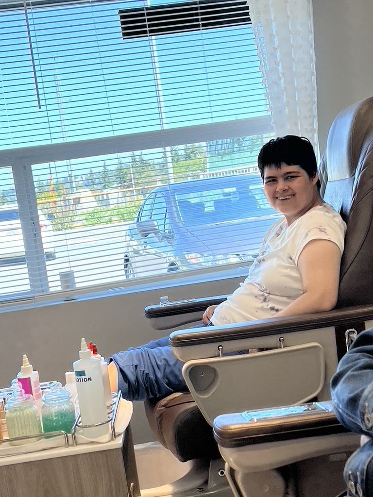Vanessa turned 20 this year. (I, too, feel old.) She continues to attend school as a “super senior”; this is her last year. She is currently in a School–to–Work program through the county. It’s a transition program before the state agency takes over to make sure she has a viable job once she finishes school. Vanessa works at a local café doing janitorial work three days a week. We set her up with ACCESS bus, King County Metro Transit for persons with disabilities.