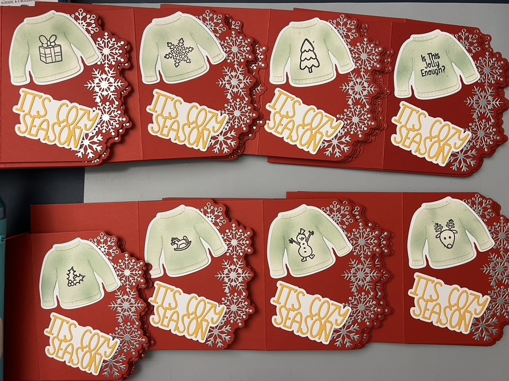 Oh, and I decided I needed extra crazy and made 8 different sweaters this year. Cards – I mean the design of the sweater for the cards. Those on my address list might get one. Those who send me holiday cards WILL get one. I made only 40. The problem now is. . . I can’t find the envelopes.