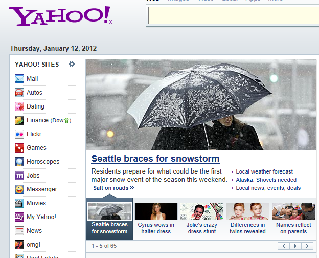 I came home today and turned on computer to check my e-mail. What do I see as the first story on Yahoo!’s homepage? This:
